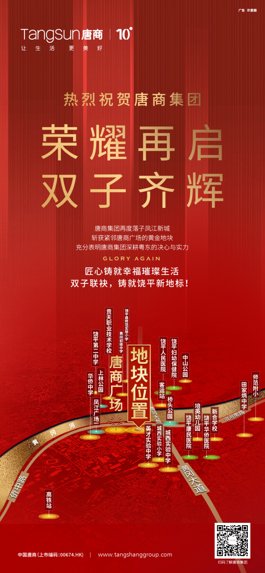 唐商集团再度落子凤江新城,斩获黄金地块,充分证明饶平中芯的价值,更体现深耕粤东的决心!双子联袂,启幕饶平人居2.0时代,续写口碑与热销传奇,礼献饶平。让服务与产品生根,带来高品质生活,为饶平人打造超越想象的生活变革!